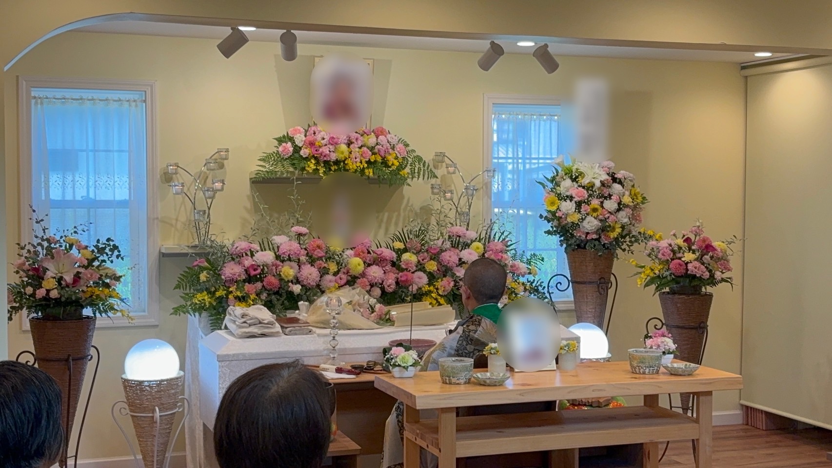 二葉のコメントお花を育てるのがお好きだった故人様を偲び、明るくやさしい雰囲気の中でのお見送りとなりました。ご家族様に大切に見守られながら、穏やかな時間が流れ、お孫様を可愛がられていたご様子が思い起こされる、あたたかなお式となりました。二葉リビングならではのご自宅の様な空間の中でそれぞれがゆっくりと故人様とのお別れの時間を過ごされていました。