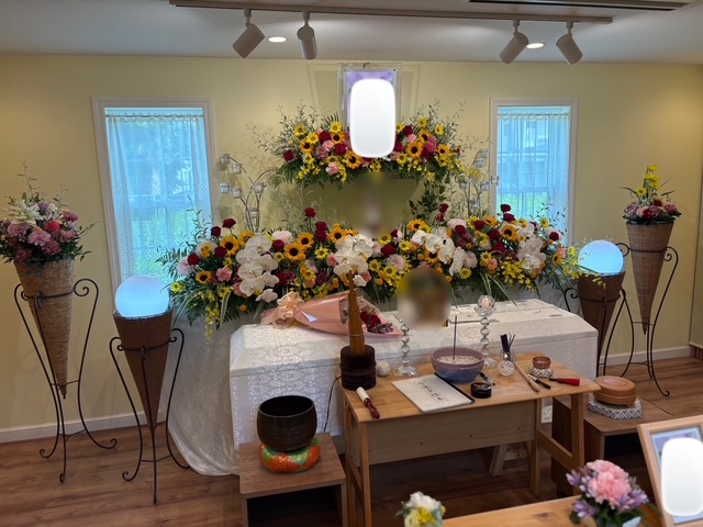 二葉のコメントご家族様中心の少人数にて、ゆっくりとしたお見送りのお手伝いをさせて頂きました。喪主を務められた娘様をはじめ、ご家族様がこの日の為にお集まりになり、それぞれの想いを大切にしながら、穏やかな時間を過ごされていました。二葉リビングのご自宅のような空間の中で、故人様を囲みながらゆっくりとお別れをされる、あたたかなひとときとなりました。